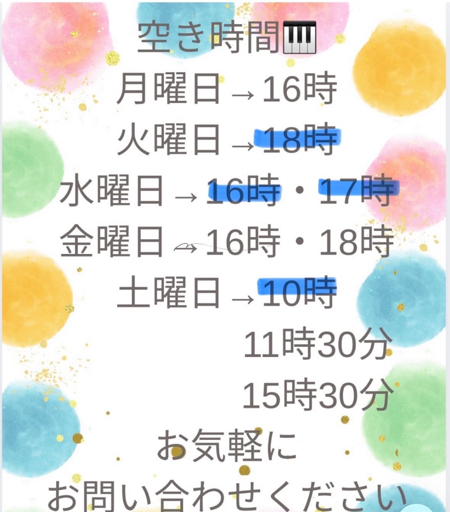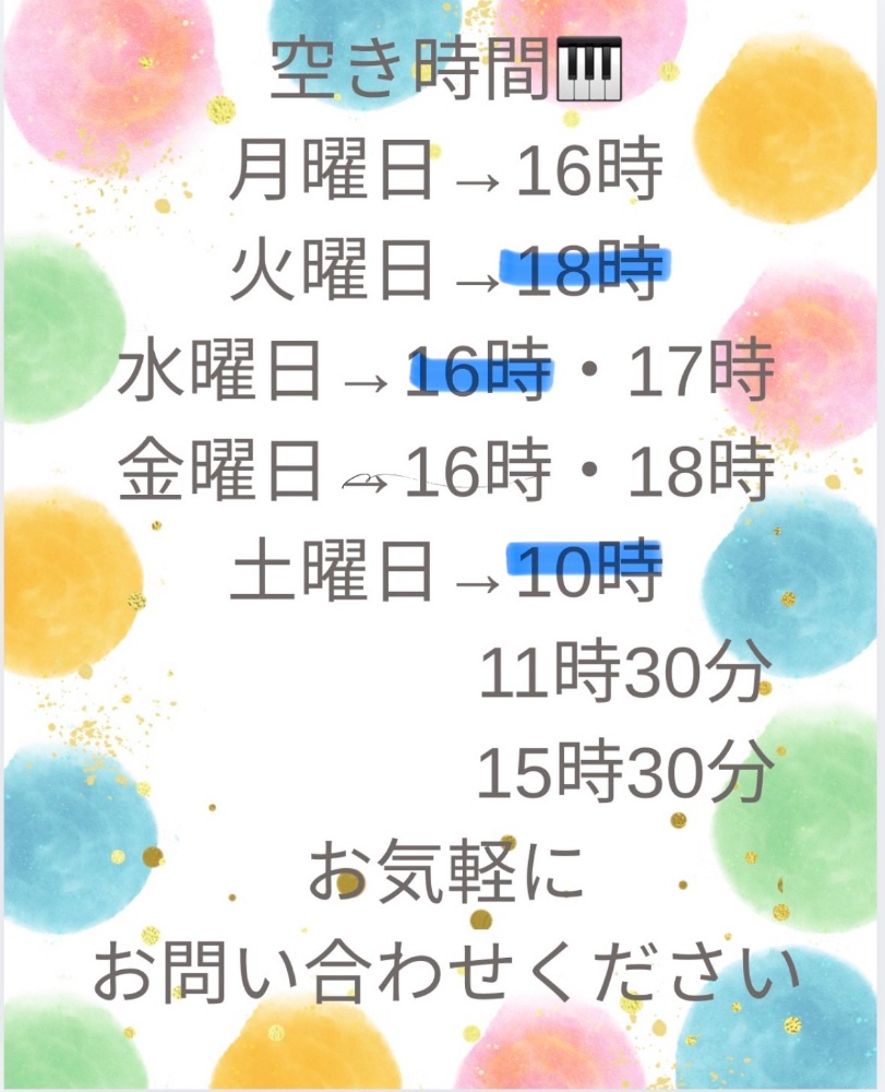 | 体験レッスン | ご説明含め30分間。 体験レッスン料2000円頂戴いたします。 下のご予約・空き時間確認ボタンより都合の良い日時をご予約してください。 |